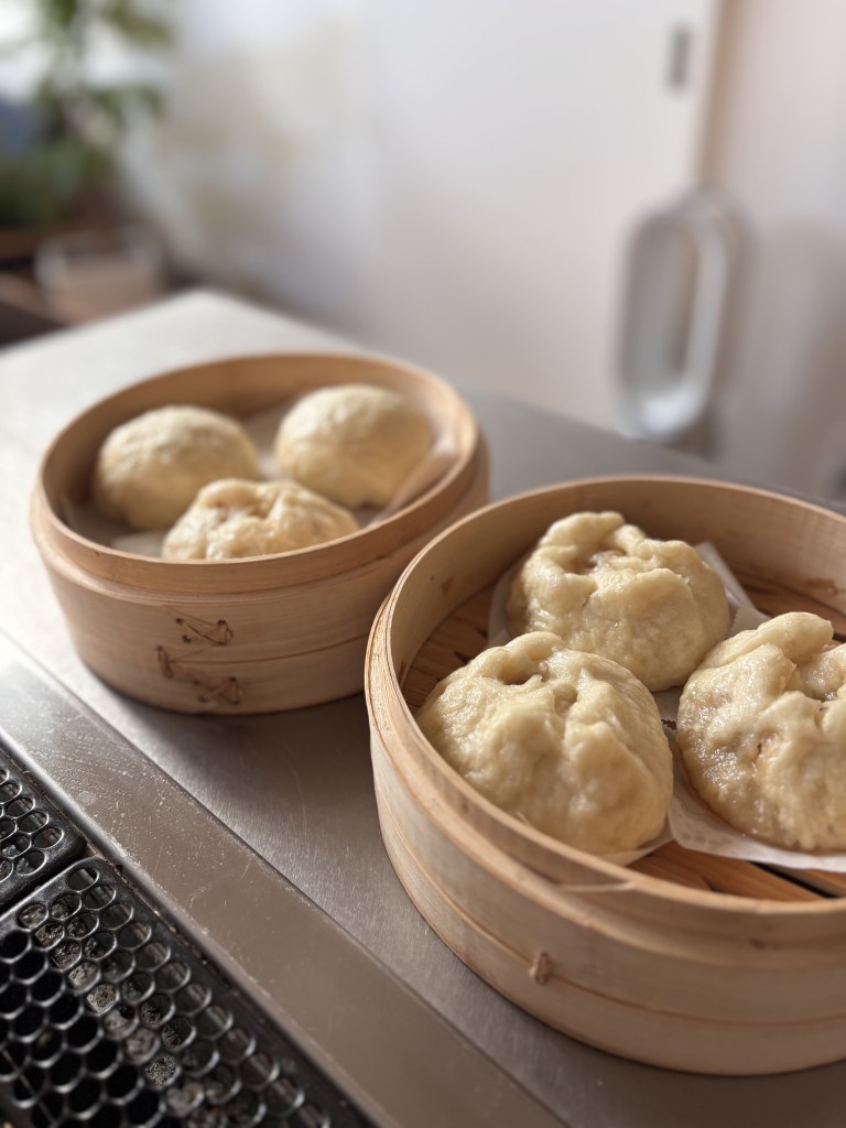 ホシノ丹沢酵母を使い、ほんのり甘みのある豆乳仕込みの饅頭生地で豚挽肉で作る餡を包み込んだ豚まんと粒餡を包む餡まんを作ります。中種法により短時間で作ることができるため、レッスンでは生地作りからのスタートとなります。