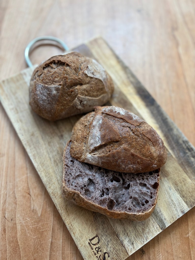 ホシノ丹沢酵母を使い、黒米パウダーを高加水のフランスパン生地に混ぜ込みしっとりもっちりとした紫色のクラムのハード系お食事パンを作ります。プレーンタイプのものとほくほくの豆のような食感が美味しいカシューナッツ入りの2種類を予定しています。レッスンでは生地の分割からスタートして、生地作りは動画でご説明いたします。