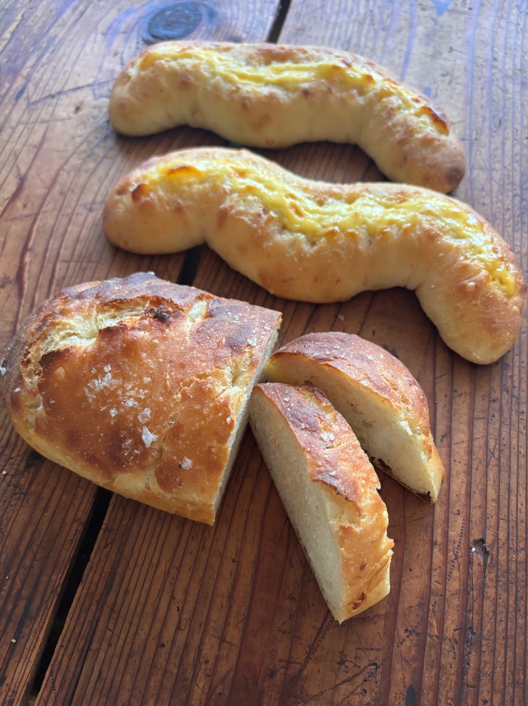 ホシノ丹沢酵母を使用して、じゃがいもを練り込んだもっちりフォカッチャ生地に桜海老を加えました。シンプルに大きく焼き上げる成型とマヨネーズ風味のクセになるソースと一緒に焼き上げる2種類の成型を予定しています。※写真はイメージです。レッスンでは分割・成型からの作業となり、生地捏ねについては動画でご説明いたします。