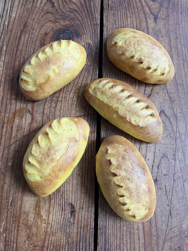 ホシノ丹沢酵母を使い、仕込水に牛乳と卵を使ったリッチな生地に蒸したカボチャを練り込み、もっちりとした食感に仕上げます。ほんのりと甘みもあり、そのままでももちろんサンドイッチにもおすすめです。レッスンでは分割からの作業となり、生地捏ねについては動画でご説明いたします。