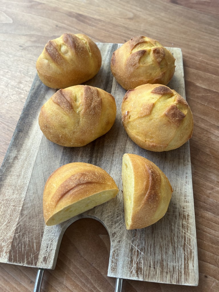 ホシノ丹沢酵母を使い、マンゴー ピュレと少しの牛乳で捏ねた生地はしっとりと口溶けよく、マンゴーのトロピカルな甘みとほのかな酸味が後をひきます。シンプルにマンゴー 風味のパンそのものを味わっていただきます。レッスンでは分割からの作業となり、生地捏ねについては動画でご説明いたします。