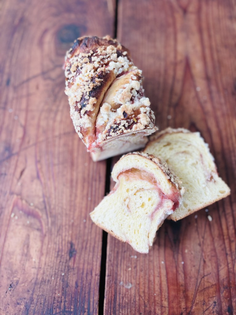 ホシノ丹沢酵母を使用したバターリッチな生地に酸味が美味しいルバーブを使ったフィリングを巻き込み、型に入れてさっくり&しっとりと焼き上げるスイーツパン。レッスンでは分割からの作業となり、生地捏ねは動画でご説明いたします。