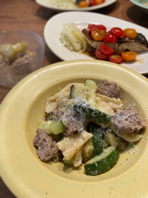 お家にある簡単な材料で手打ちパスタ(ショートパスタ)を作りましょう。サルシッチャと夏野菜を合わせていただきます。