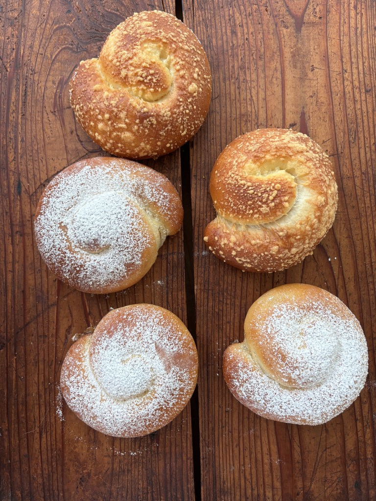 ホシノ丹沢酵母を使用してスペイン・マヨルカ島発祥の菓子パンを作ります。現地では大きく焼いて切り分けるタイプを見かけましたが、レッスンでは小さいサイズを作ります。甘いバージョンとチーズをのせた甘塩っぱいもの2種類を予定してます。レッスンでは分割からの作業となり、生地捏ねは動画でご説明いたします。※写真はイメージ