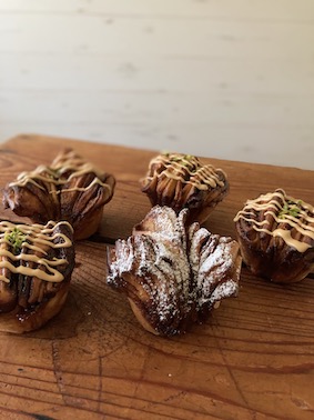 ホシノ丹沢酵母を使ったコーヒー風味の菓子パンを作ります。簡単な折り込み工程でコーヒー風味のバターペーストを層にして、さっくりフレーク状に焼き上げます。コーヒーが苦手な方はシュガーバターに変更も可能です。レッスンは1次発酵済みの生地をご用意します。生地捏ねは動画にて説明いたします。